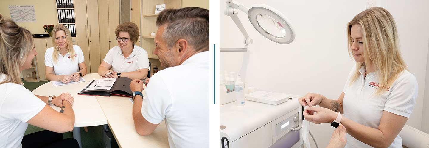 Die regelmäßige Weiterbildung aller Mitarbeiter garantiert eine ordnungsgemäße Beratung und Behandlung.